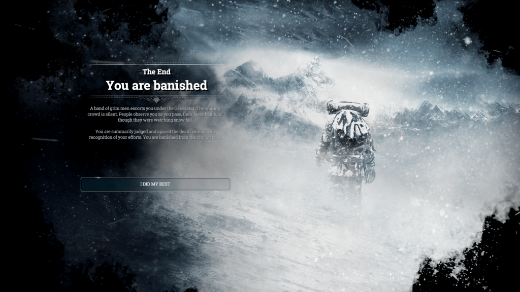I will answer Frostpunk’s challenge. I will build a city that survives the storm. I believe spring will come.
